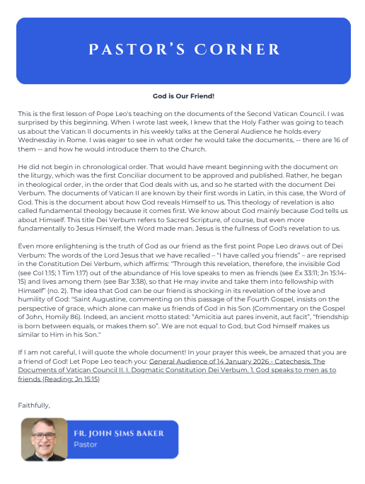 Meet Father Baker, Pastor for Church of the Holy Rosary.